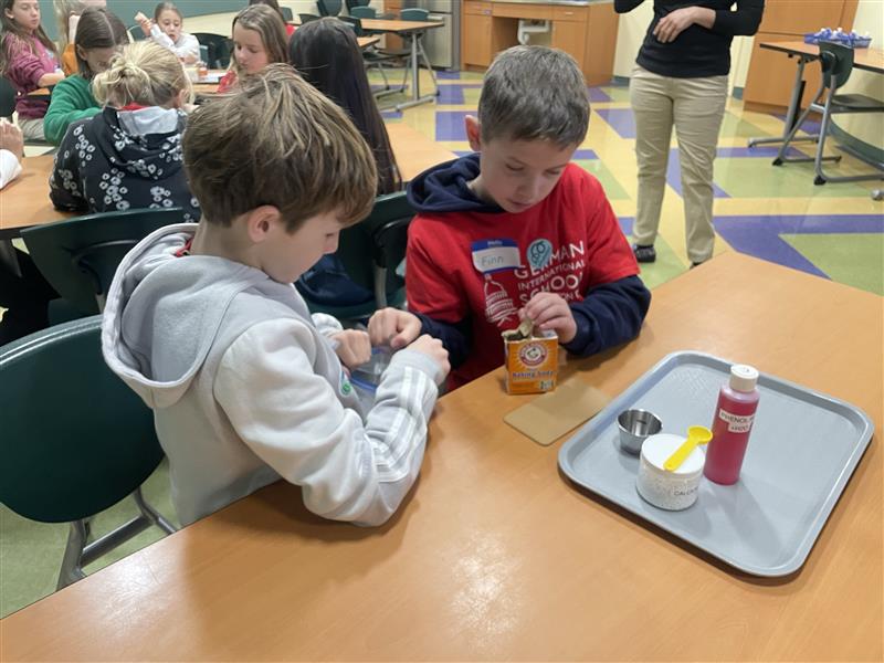 Im Rahmen des NaWi-Unterrichts unternahmen die vierten Klassen kurz vor den Weihnachtsferien einen spannenden Ausflug ins Maryland Science Center in Baltimore. Dort nahmen die Schülerinnen und Schüler zunächst an einer sogenannten „Ziplock- Chemistry Class“ teil, in der sie verschiedene chemische Vorgänge selbst durchführen und genau beobachten konnten. Mit großem Interesse experimentierten sie und stellten viele spannende Fragen.